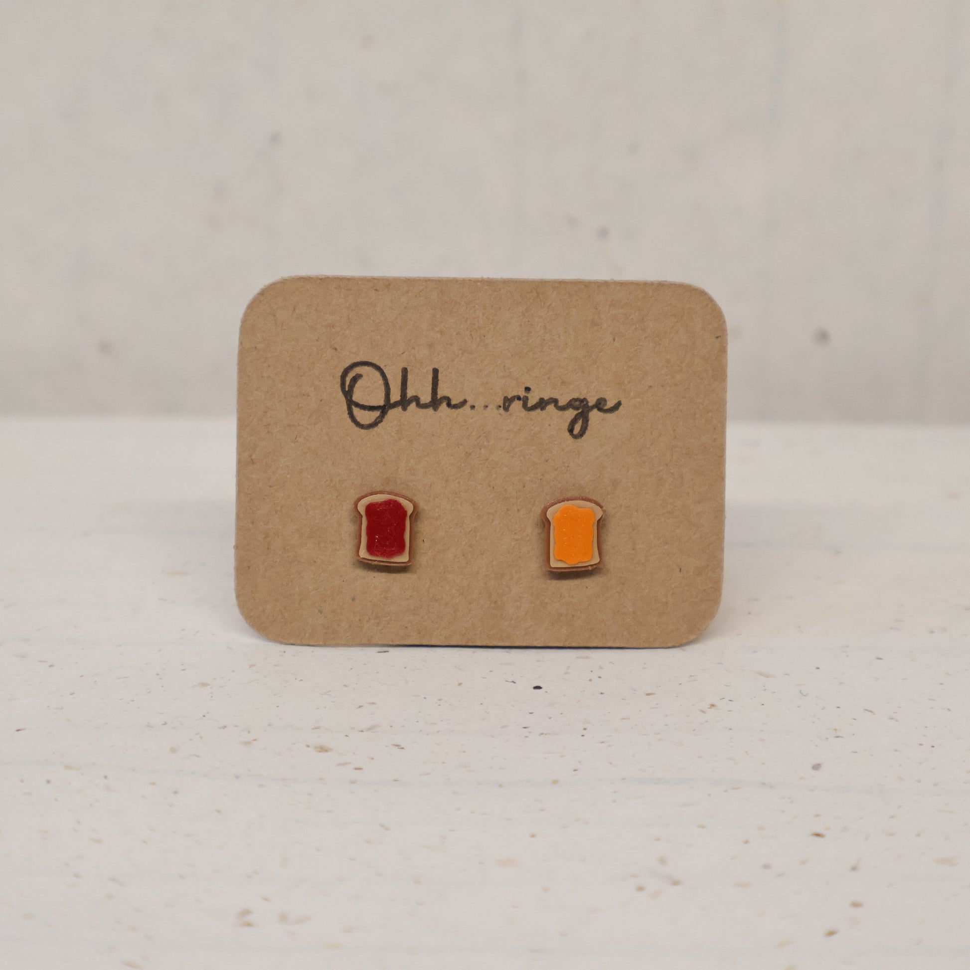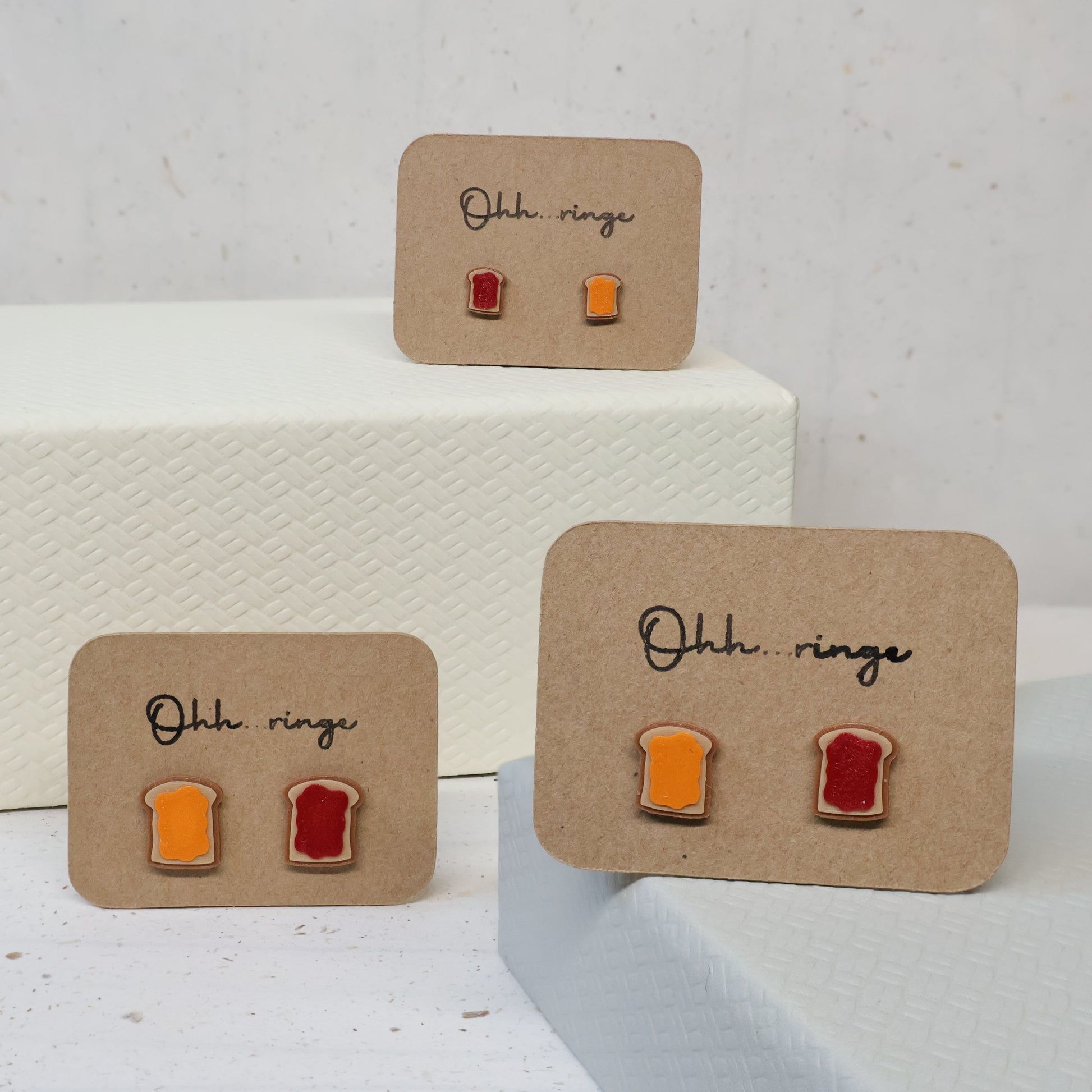 3D-gedruckte Ohrringe mit biologisch abbaubarem Filament (PLA), Kunststoff-Stift und Silikonverschluss.