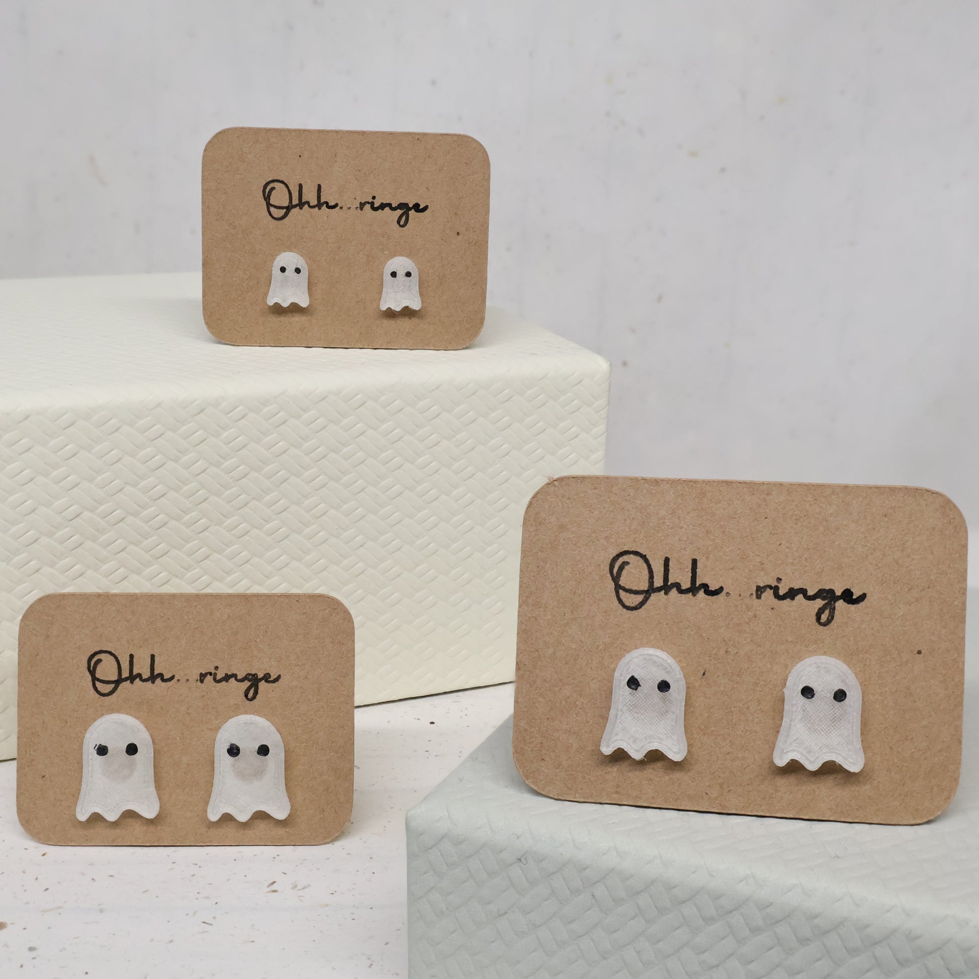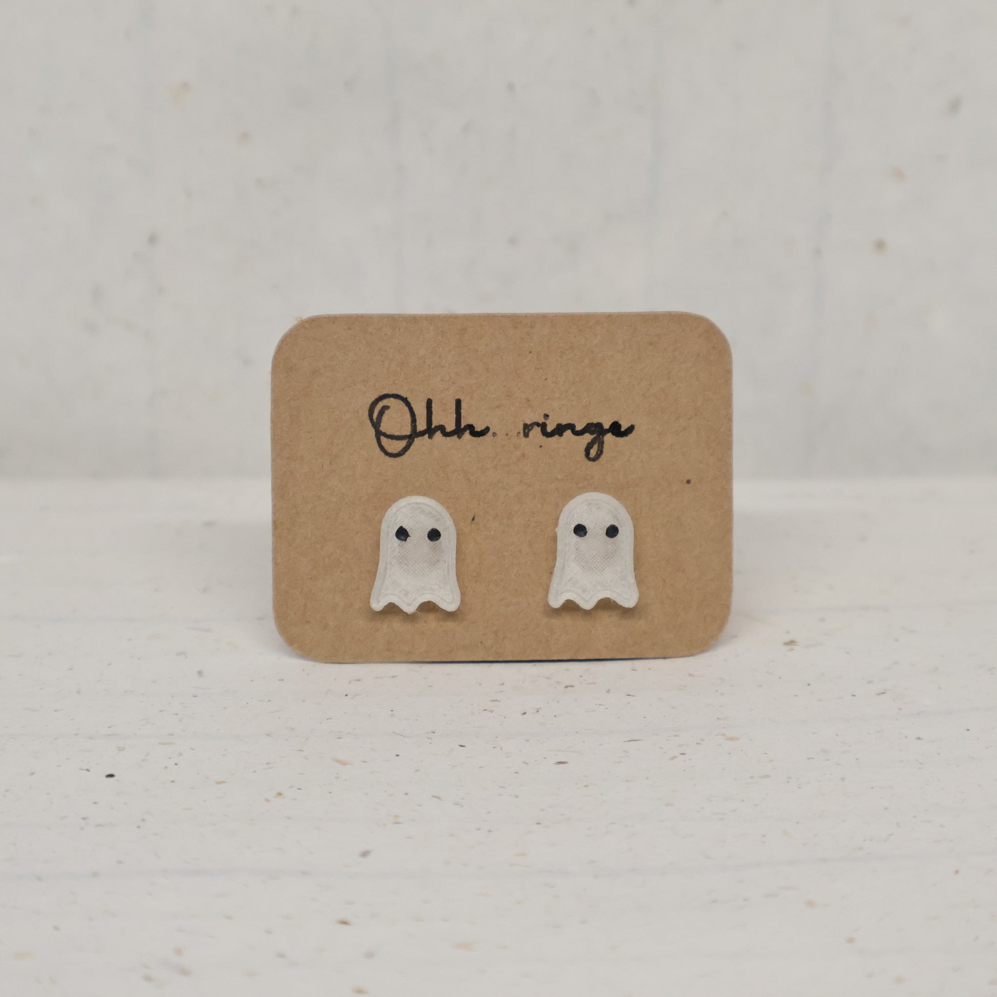 3D-gedruckte Ohrringe mit biologisch abbaubarem Filament (PLA), Kunststoff-Stift und Silikonverschluss.
