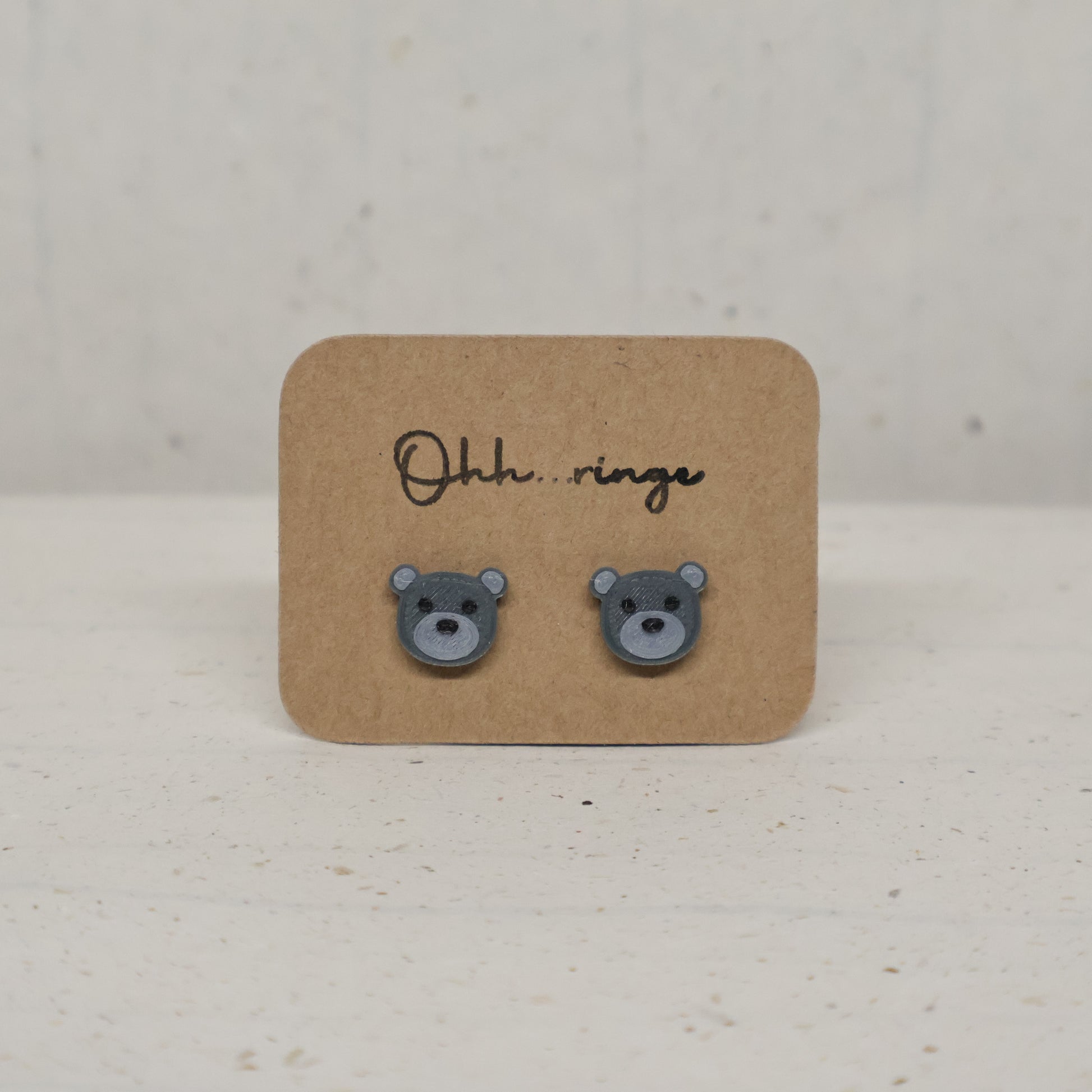 3D-gedruckte Ohrringe mit biologisch abbaubarem Filament (PLA), Kunststoff-Stift und Silikonverschluss.