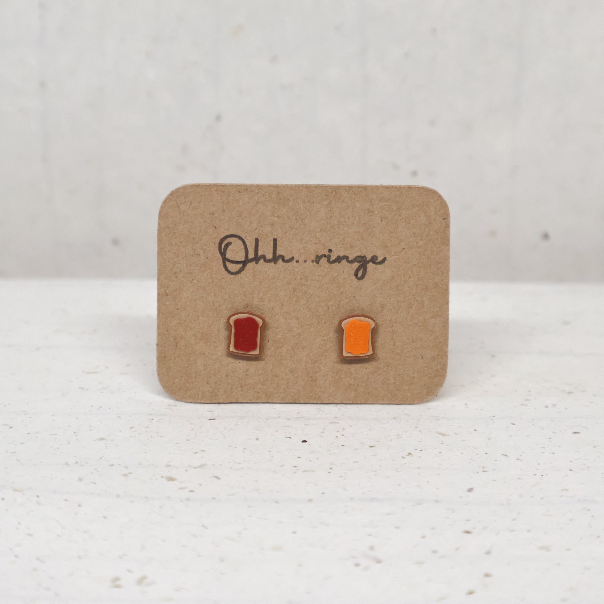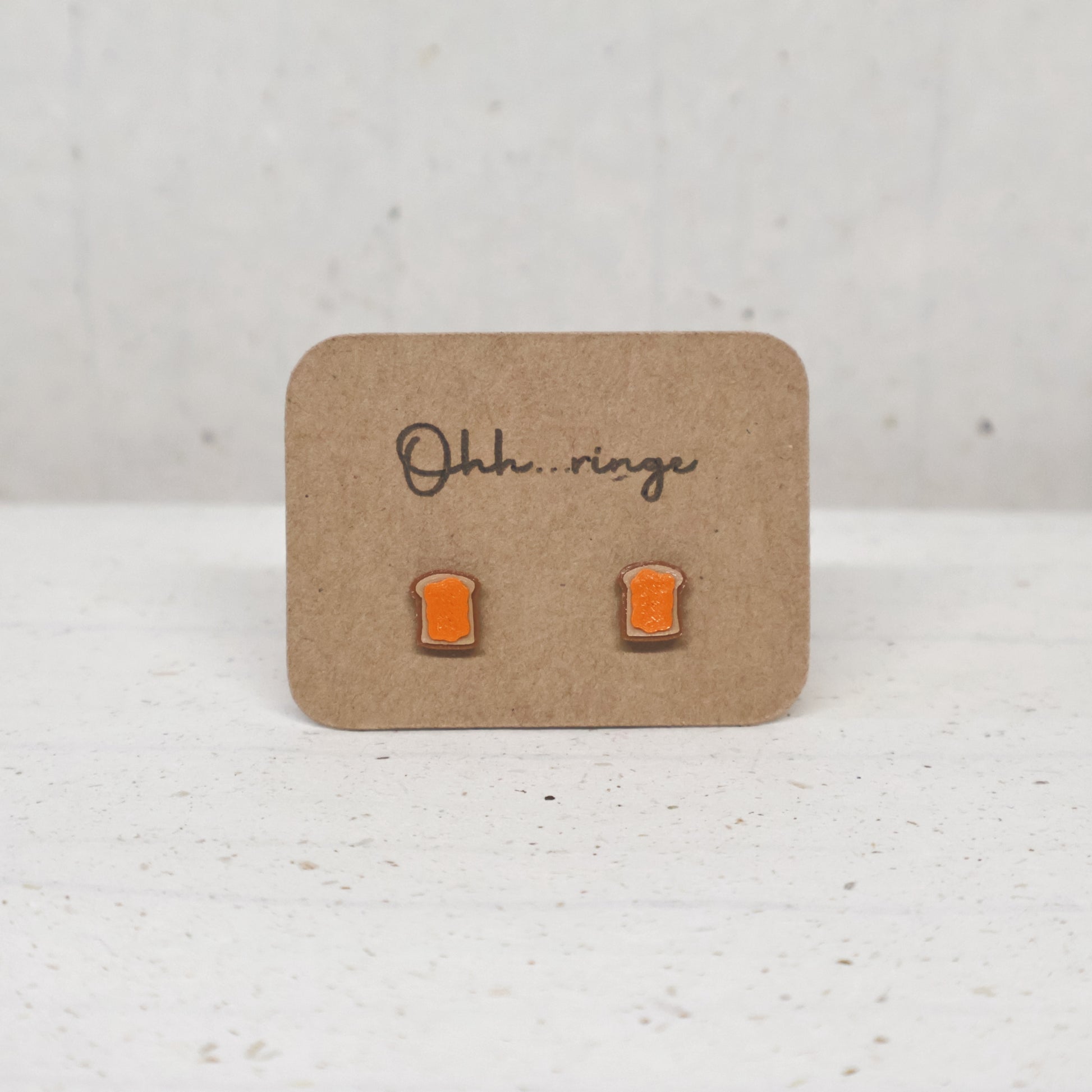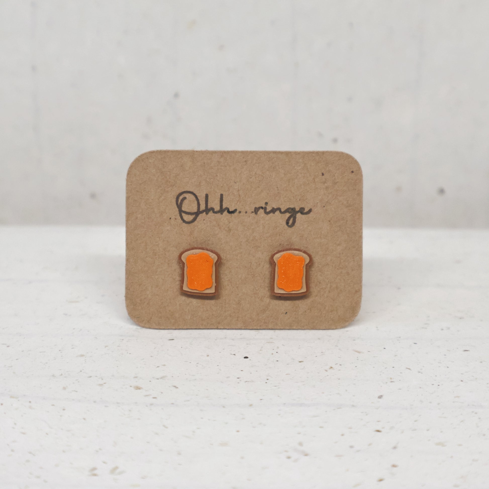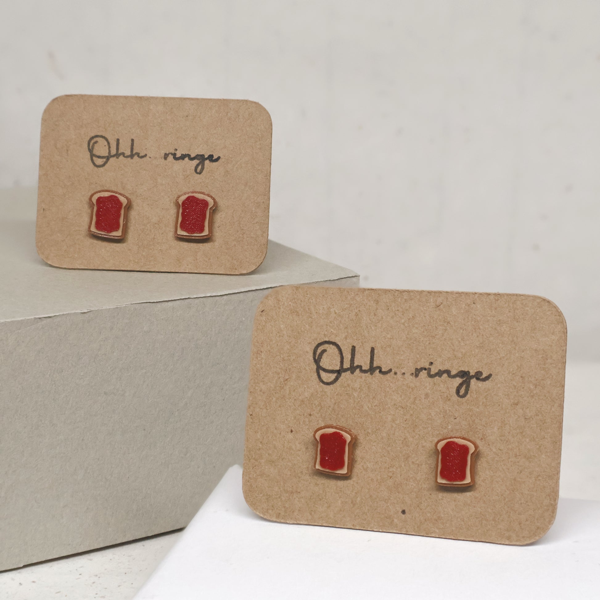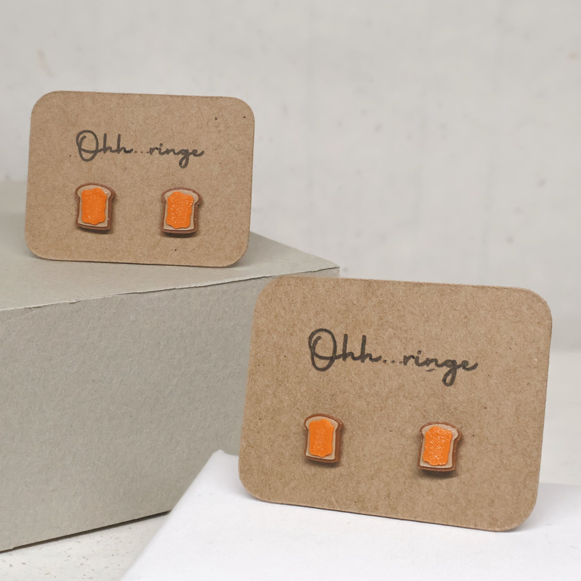 3D-gedruckte Ohrringe mit biologisch abbaubarem Filament (PLA), Kunststoff-Stift und Silikonverschluss.
