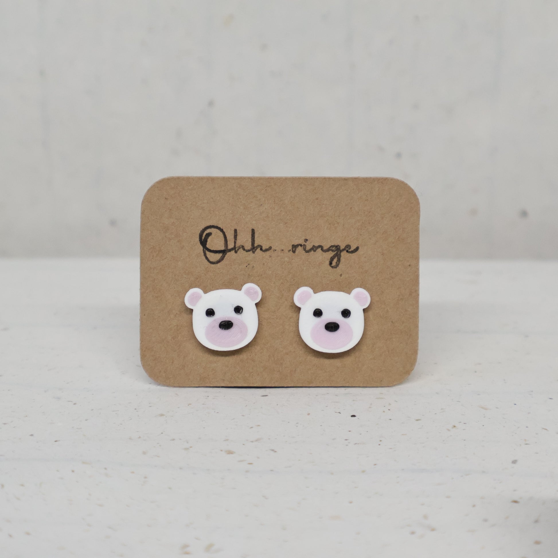3D-gedruckte Ohrringe mit biologisch abbaubarem Filament (PLA), Kunststoff-Stift und Silikonverschluss.