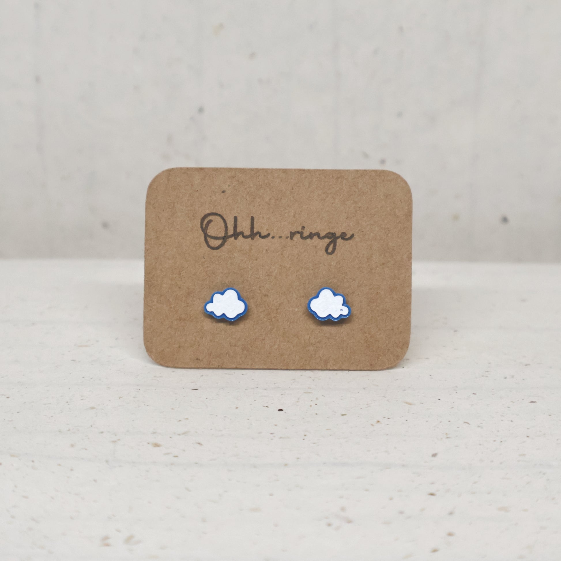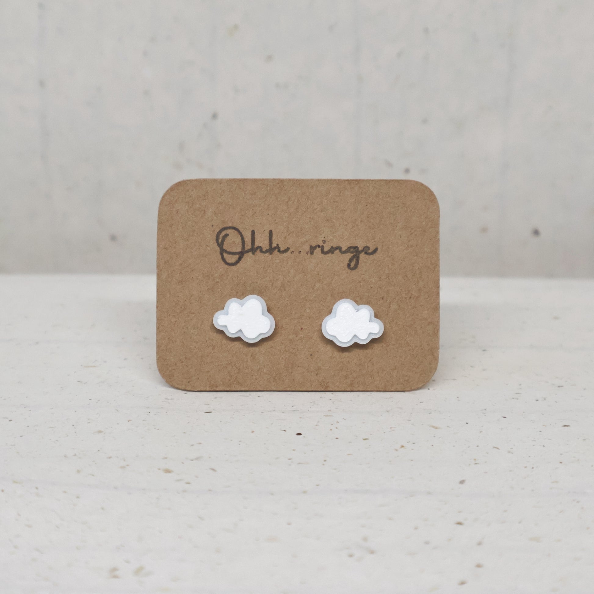 3D-gedruckte Ohrringe mit biologisch abbaubarem Filament (PLA), Kunststoff-Stift und Silikonverschluss.